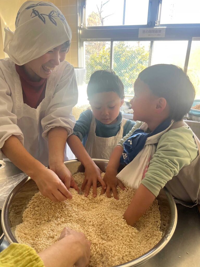 ちびっこ達の菌をもらい、みんなでワイワイおしゃべりや歌いながら仕込んだ味噌は、きっと美味しくなるに違いないです。