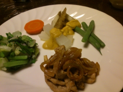 焼肉と温野菜たち。ごぼうは体を温めるのでこの季節
