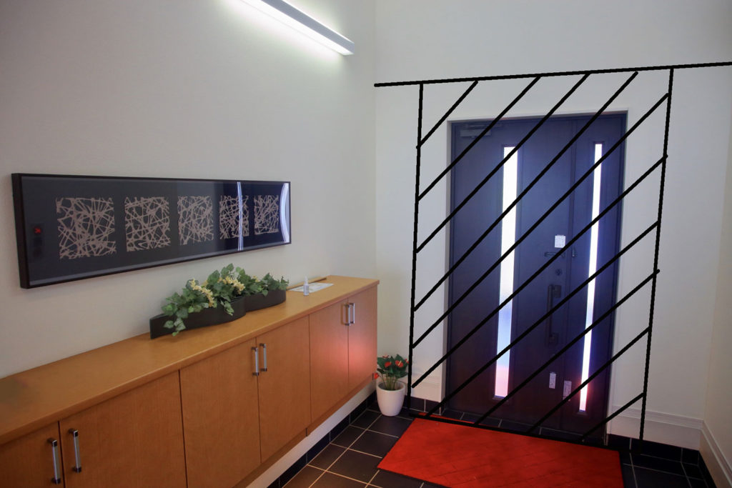 加工OK素材からいただいてきた玄関の写真、広いですね。そして、靴箱多過ぎ笑