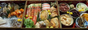 お煮しめの汁は、4回くらい大根、カブ、人参、昆布などを煮て完食(これ初挑戦だったけれど、たっぷりの出汁と野菜の煮汁で今までなんで汁捨ててたのってびっくりするくらい美味しかったです。みなさんどうしてるのかしら。捨てていたの私だけかな。)、黒豆の汁は寒天に、菊花カブの汁はワカメを入れて酢の物に。八幡巻の煮こごりは、熱々ご飯にかけてほくほくいただきました。