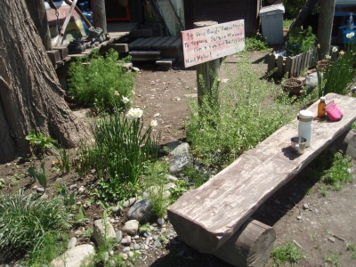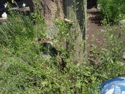 雑草のペンペン草が、ここでは立派な入口の花壇の主役。