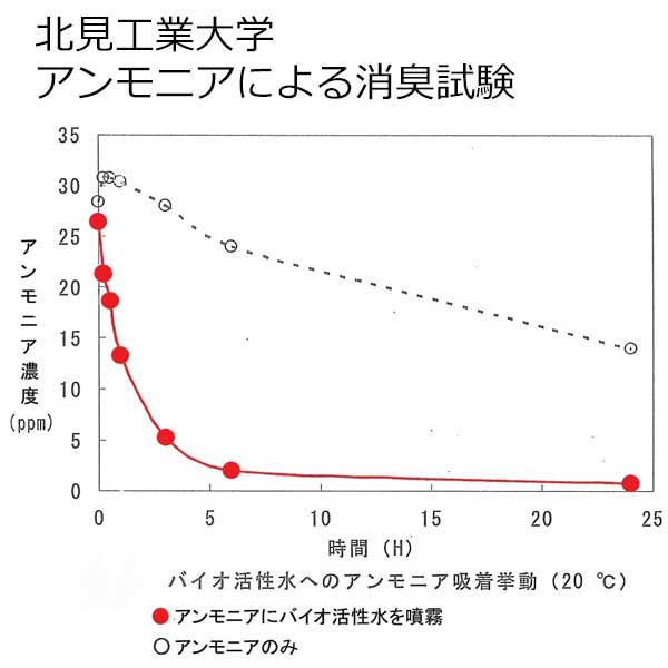 下記の試験結果により、アンモニアや腐敗の悪臭成分が急激に減少しているのが分かります。