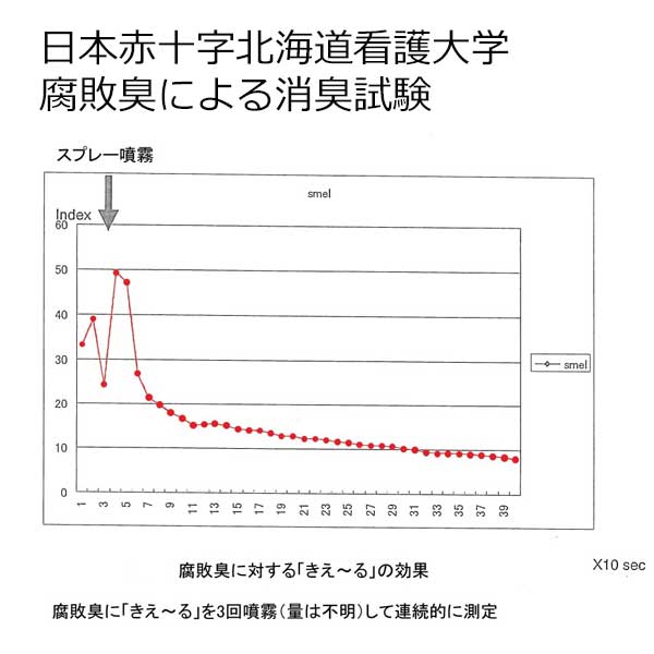 図1.北見工業大学アンモニアによる消臭試験 図2.日本赤十字北海道看護大学腐敗臭による消臭試験